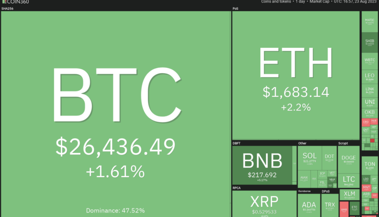 The long tail on Bitcoin’s Aug. 22 candlestick is a positive sign as it shows that the bulls are fiercely trying to protect the support at $24,800.