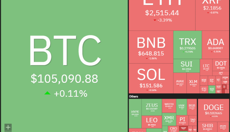 Bitcoin plunged below the 20-day exponential moving average ($104,934) on June 5 and fell to the vital support at $100,000.