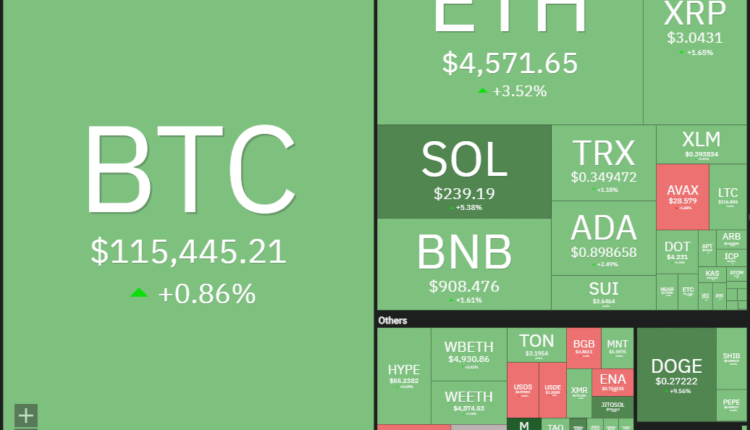 The bears will have to pull the Bitcoin price back below the 20-day exponential moving average ($112,622) to weaken the bullish momentum. The pair may then collapse to $107,000, where the buyers are expected to step in.