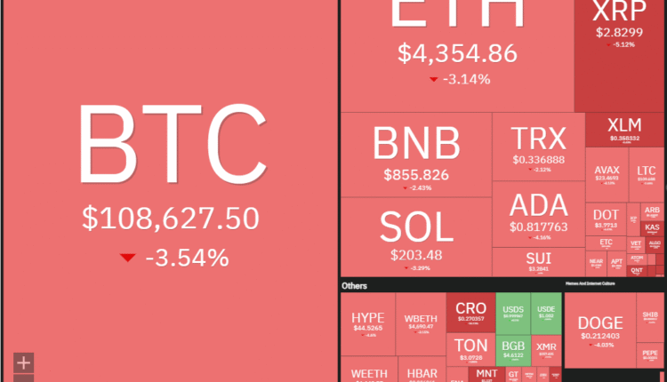 The price turned down sharply on Friday and fell below the $108,666 support. If the price maintains below $108,666, the BTC/USDT pair could plummet to $105,000 and eventually to psychological support at $100,000.