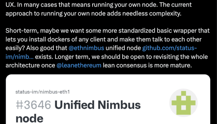 “I feel like at every level, we have implicitly made this decision that running a node is this oh so scary DevOps task that it is ok to leave to professionals,” Buterin said in a post on X. He continued: