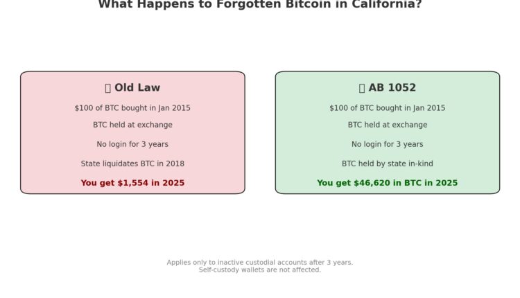 “What it does is update the unclaimed property laws so when your Bitcoin is turned over as unclaimed property from an exchange, it stays in the form of Bitcoin rather than being liquidated. You can then get it back from California in Bitcoin,” he said.