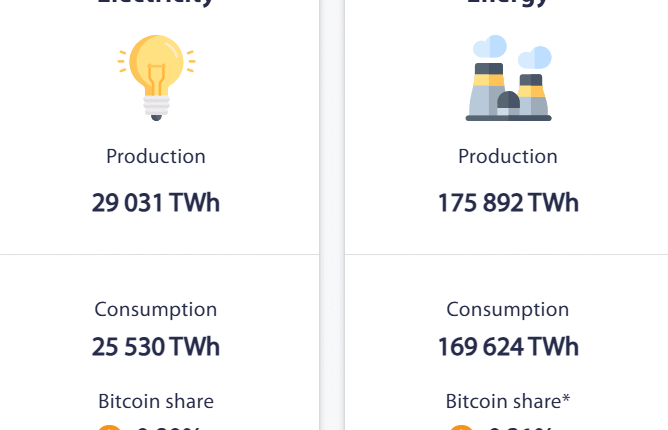 Data from the Cambridge Bitcoin Electricity Consumption Index estimates that Bitcoin’s share of global electricity is roughly 0.8%.