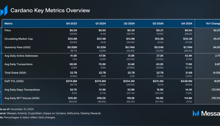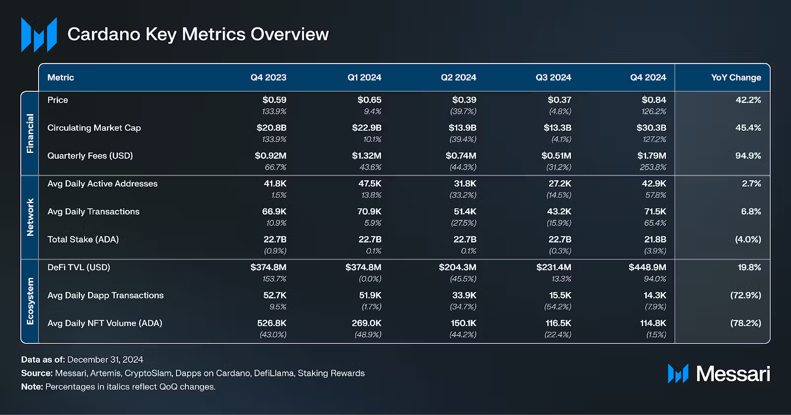 Cardano key metrics overview, Q4 2024. Source: Messari