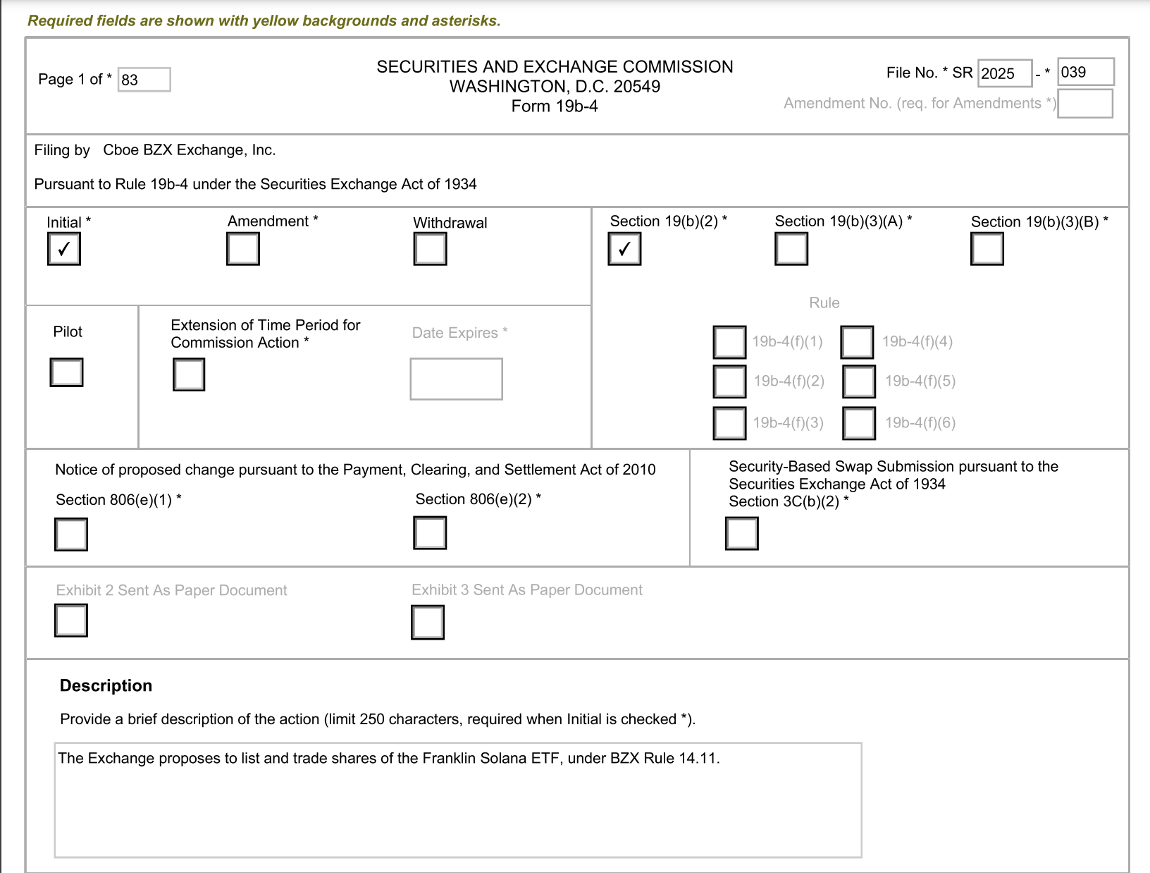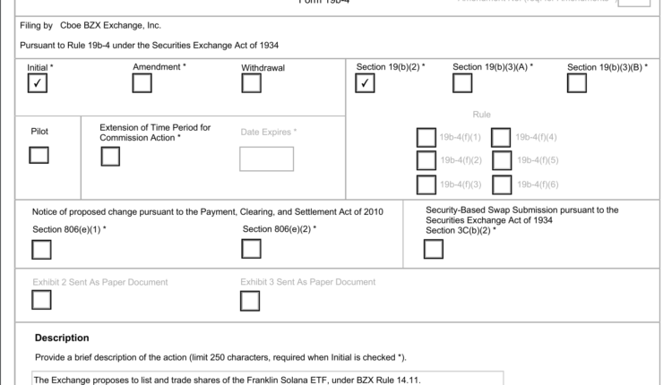The Solana ETF application filed on behalf of Franklin Templeton. Source: Cboe
