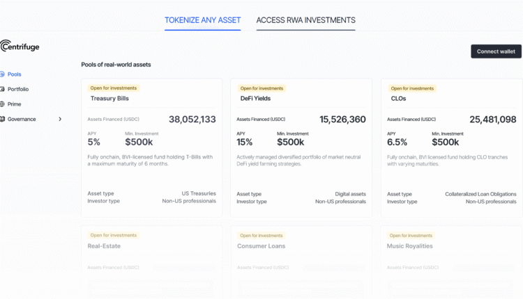 Centrifuge offers tokenized real-world asset pools for investors. Source: Centrifuge