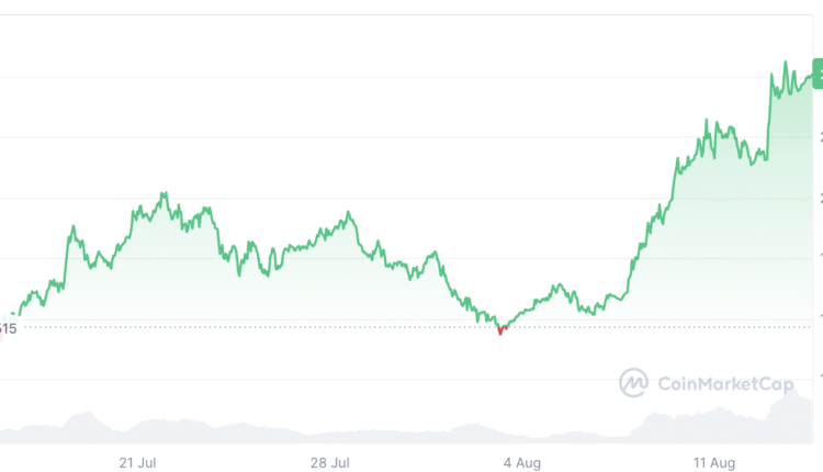 Santiment said it is the “highest level of bullishness” Chainlink (LINK) has seen since Feb. 1, over six months ago. Chainlink has also been up 54% over the past 30 days, trading at $24.0 at the time of publication, according to CoinMarketCap data.