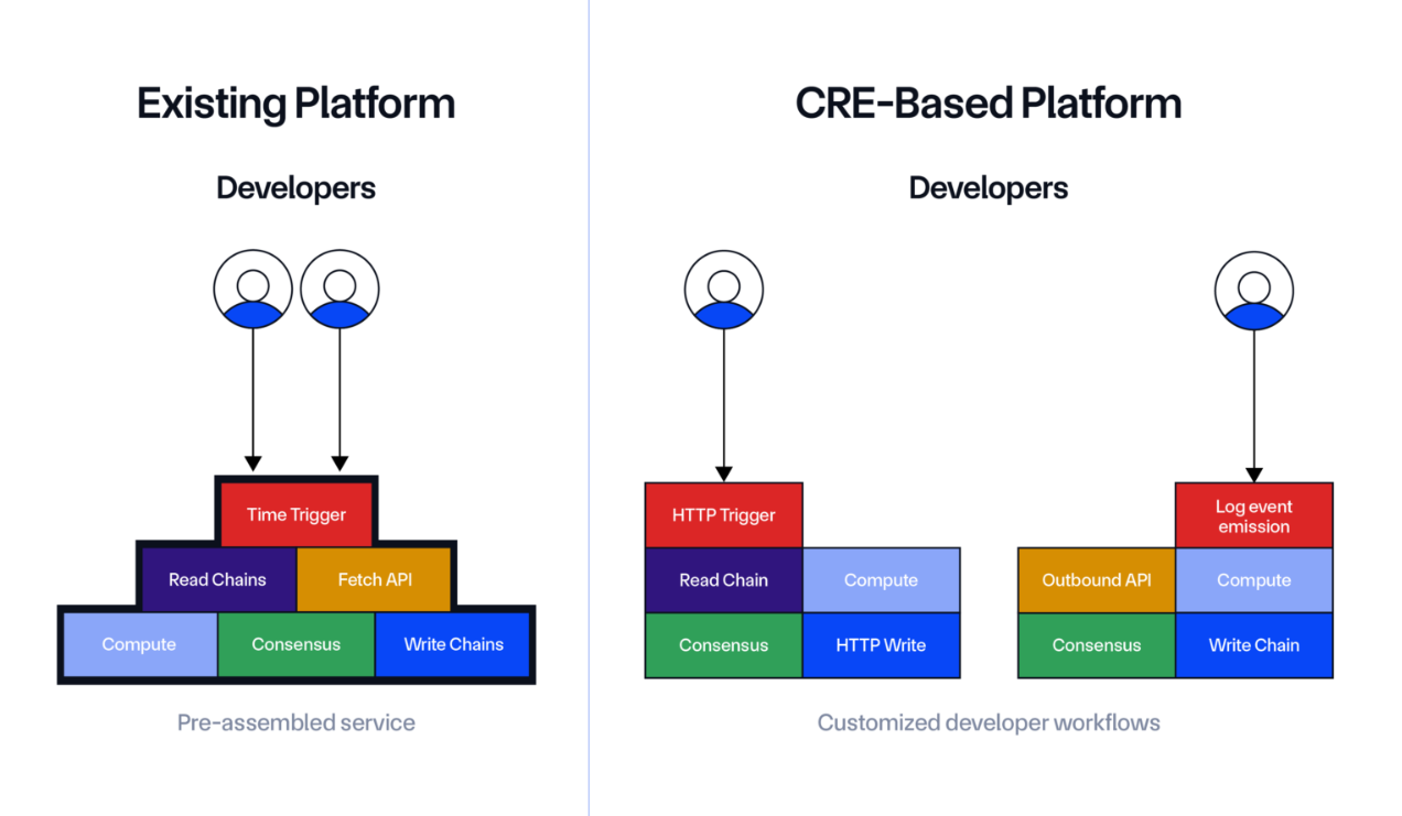 Effectively, CRE functions like an operating system for the Chainlink network. It runs “workflows” composed of Chainlink services and pulls together price feeds, crosschain messaging, external application programming interfaces (API), zero-knowledge proofs and compliance checks.