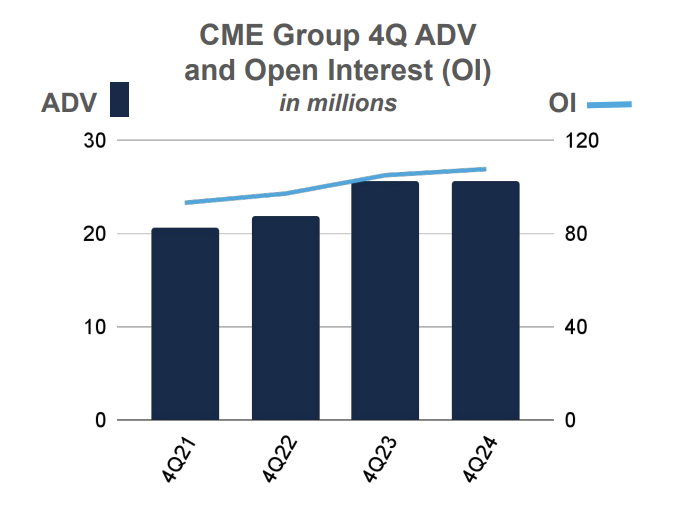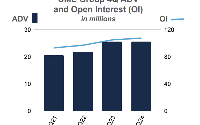 CME open interest on derivatives contracts quarter-by-quarter 2024. Source: CME Group