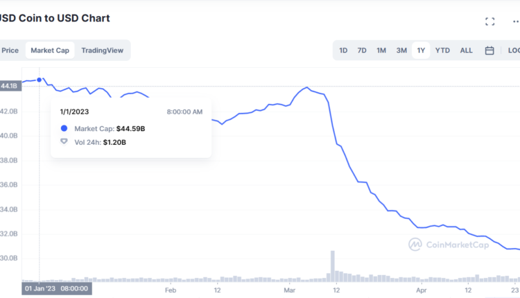 USDC market capitalization fell by 32% in 2023. Source: CoinMarketCap