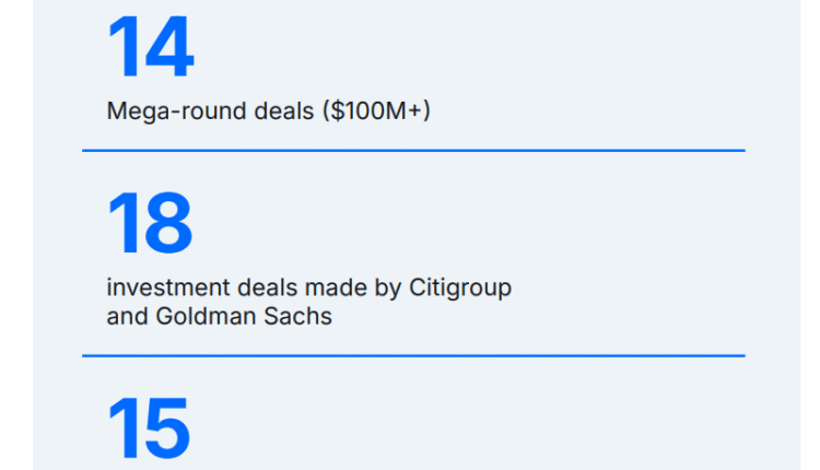Global Systemically Important Banks (G-SIBs), a group of financial institutions with such significant economic weight that their failure could trigger global financial instability, accounted for 106 deals, including 14 mega-rounds valued at over $100 million each.