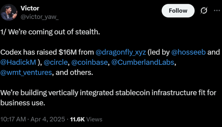 Codex isn’t the only stablecoin network to emerge from stealth this year. In January, a layer-1 network called 1Money raised $20 million to further develop its stablecoin payment platform.