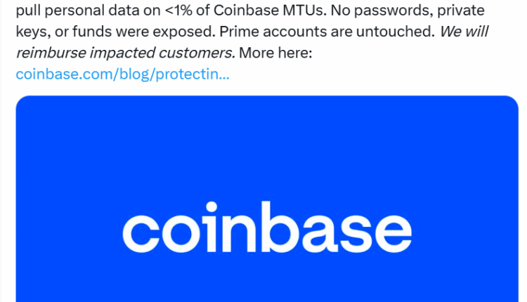 Less than 1% of Coinbase’s monthly transacting users’ data was affected by the attack, the company said.
