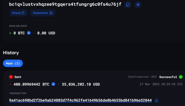 Suspected 400 BTC phishing theft victim. Source: Blockchair