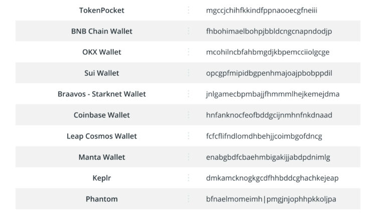 StilachiRAT specifically targets the following cryptocurrency wallet extensions: