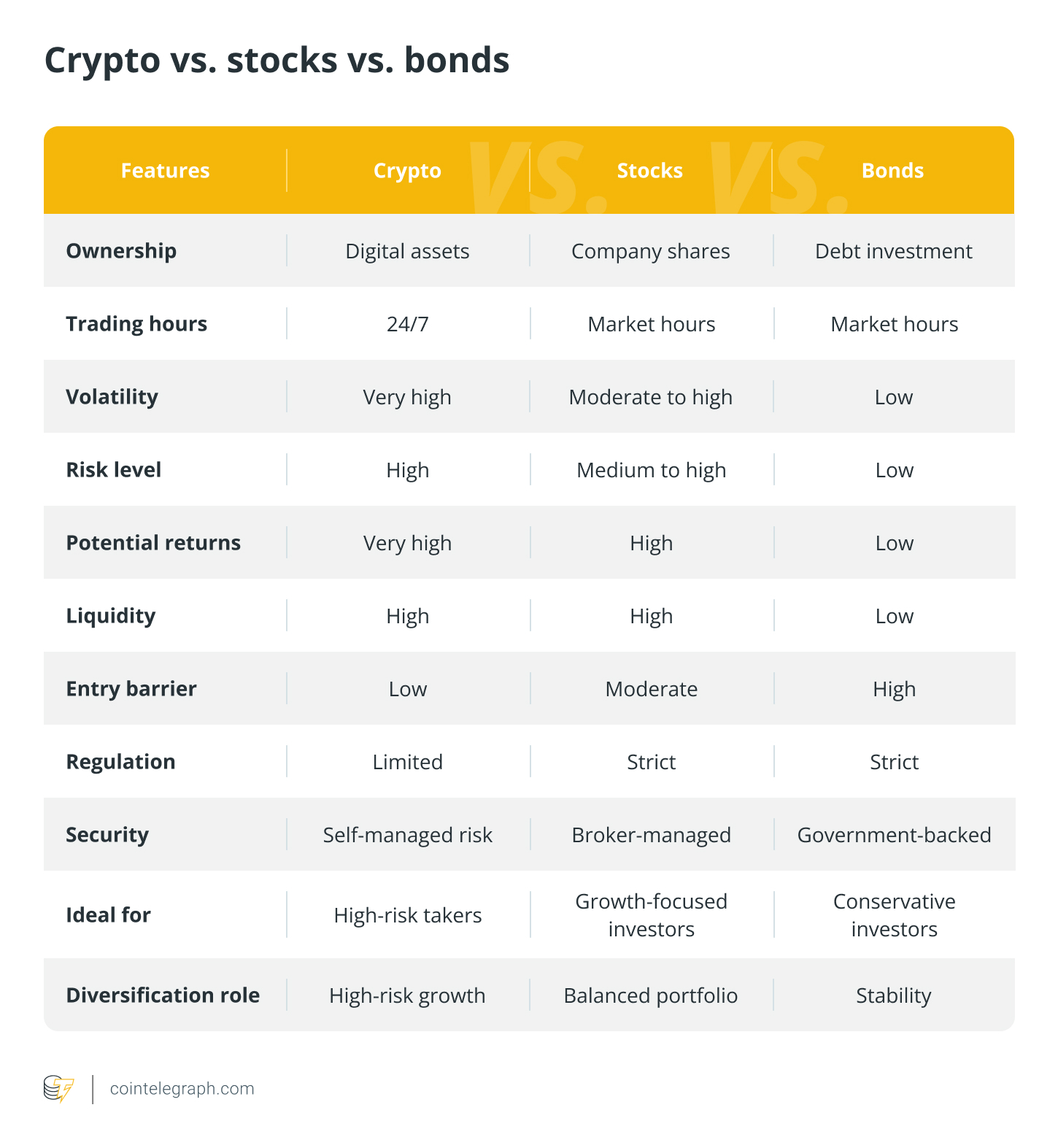 Regulatory differences between crypto, stocks and bonds