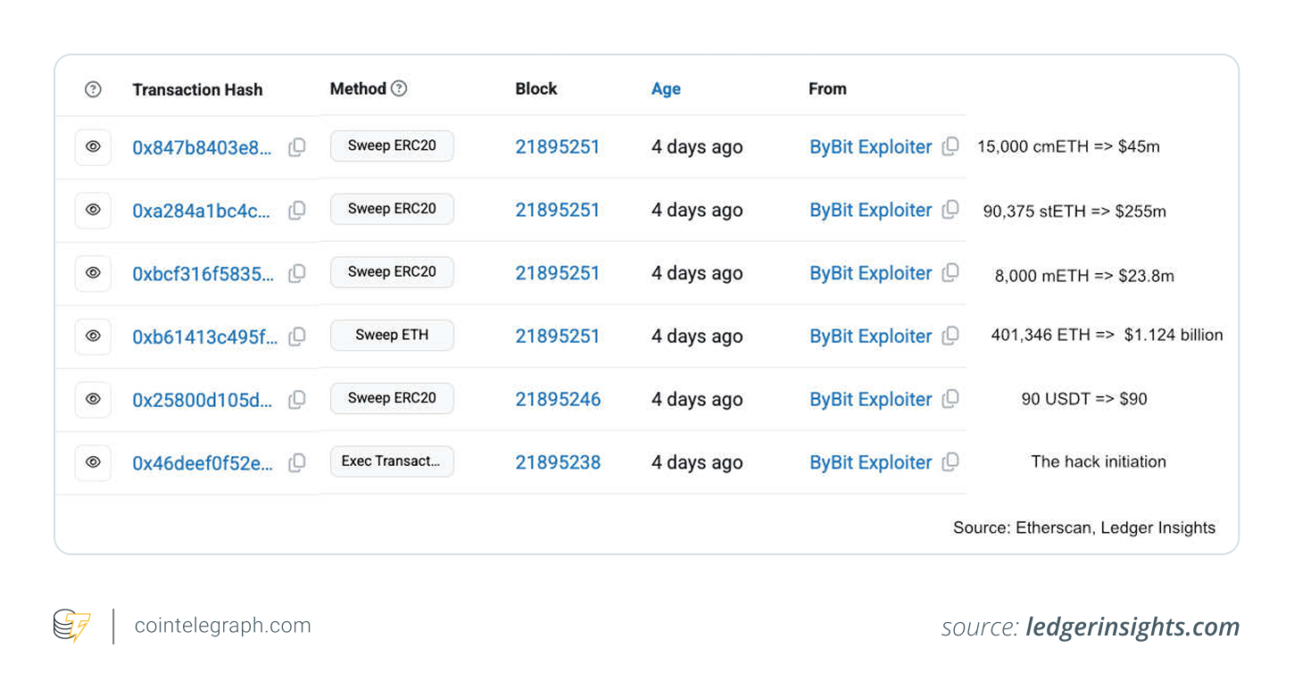 Technically, the Bybit hack is a different case than the previous instances, which were on the protocol layer and the application layer, respectively.