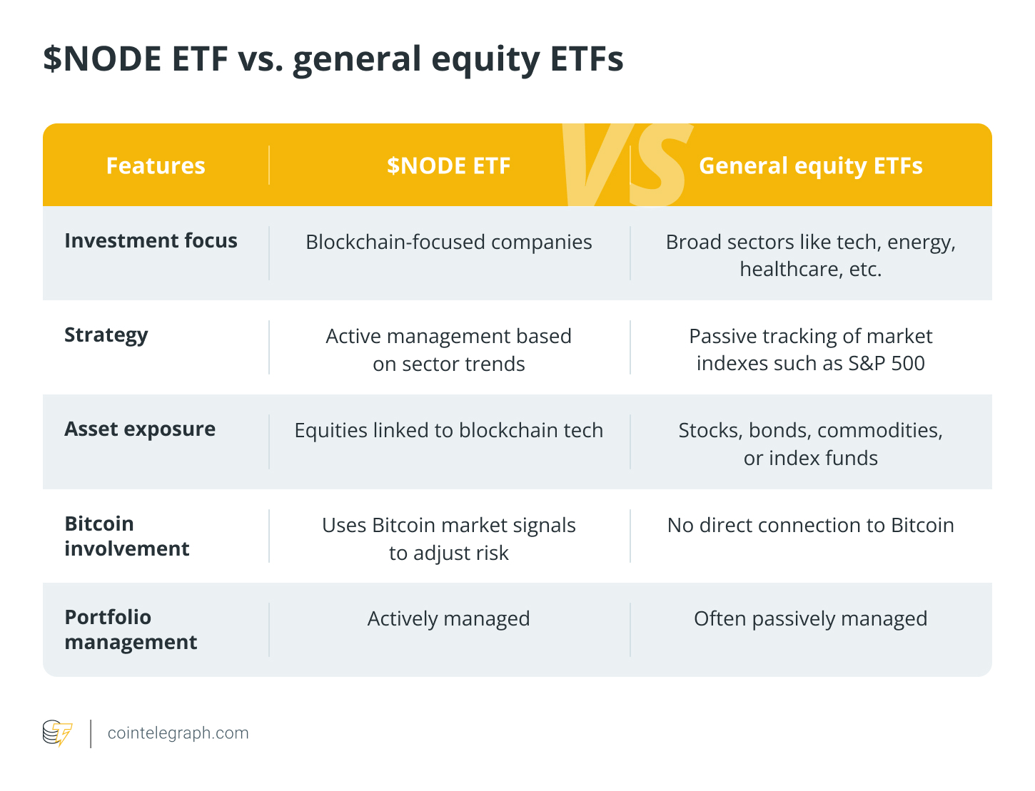 The following table illustrates the difference between $NODE and general equity ETFs: