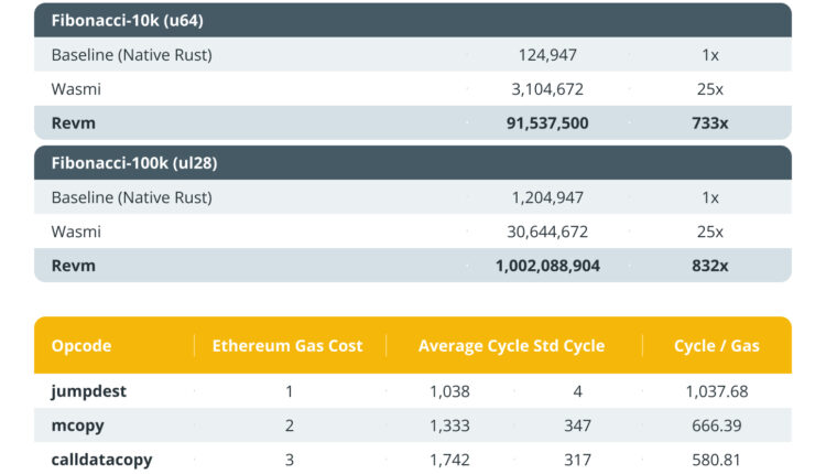 Additionally, RISC-V’s simple, flexible instruction set is better suited for ZK-proof computations than the EVM, which incurs overhead from administrative tasks like gas accounting and state management.