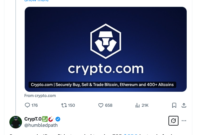 “Looking forward to catching up with our community on Tuesday,” Crypto.com CEO said in a March 19 post on X, adding the hashtag “MakeCROGreatAgain.”