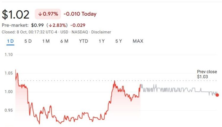 Kindly MD (NAKA) saw a 0.97% drop on the day and shed an additional 2.83% to trade at $0.99 in after-hours trading.