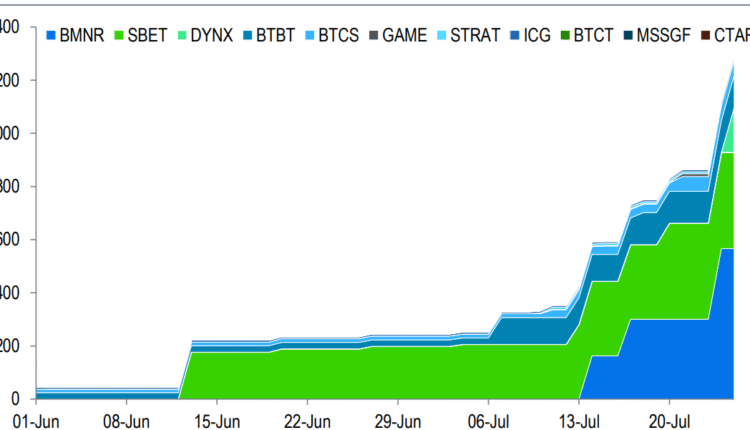 Corporate cryptocurrency treasury firms have bought up 1% of the total Ether (ETH) supply since the beginning of June, the bank said in a Tuesday research report.