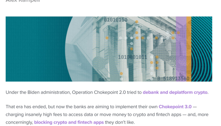 However, recent incidents suggest the practice remains entrenched. Last week, Andreessen Horowitz partner Alex Rampell warned that big banks are squeezing fintech and crypto apps in “Operation Chokepoint 3.0,” by hiking fees to access account data or transfer funds to platforms like Coinbase and Robinhood.