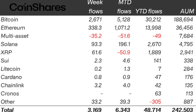 Crypto exchange-traded products (ETPs) recorded $3.17 billion in inflows last week despite the market correction caused by fresh China tariff threats from US President Donald Trump, CoinShares reported on Monday.
