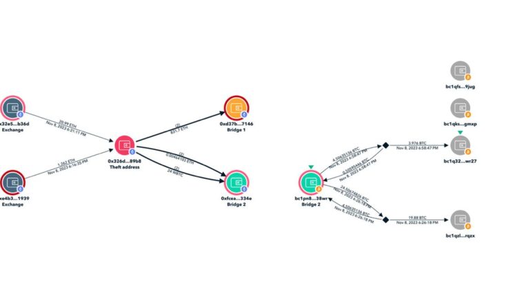 According to a Nov. 8 post to his Telegram channel, blockchain sleuth ZachXBT highlighted two transactions entering the alleged hackers wallet. Afterwards, the wallet’s owner bridged the funds to the Bitcoin (BTC) network via ThorChain and Wan Bridge.