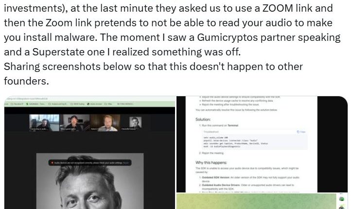 “They exploit human psychology, you think you’re meeting with important VCs and rush to fix the audio, causing you to be less careful than you usually are. Once you install the patch, you’re rekt.”