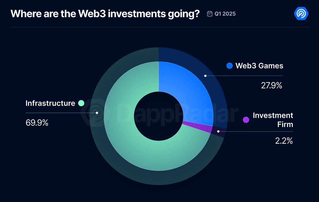 Most of the funding for Web3 gaming last quarter went to infrastructure-focused projects. Source: DappRadar