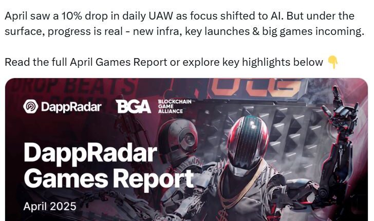 “April 2025 wasn’t a record-breaking month for blockchain gaming, and that’s okay. What we’re seeing is a space recalibrating,” she said.