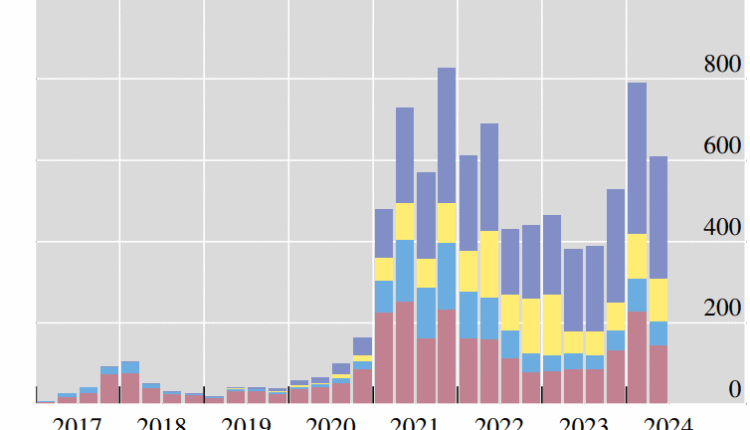 The BIS study, published May 8, found cross-border payments using the two largest cryptocurrencies, Bitcoin (BTC) and Ether (ETH), and the two largest stablecoins, USDT (USDT) and USDC (USDC), totaled approximately $600 billion during the second quarter of 2024, the final observation period covered by the analysis.