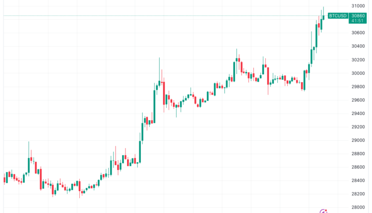 Data from Cointelegraph Markets Pro and TradingView showed BTC price adding momentum to reach $30,944 on Bitstamp.