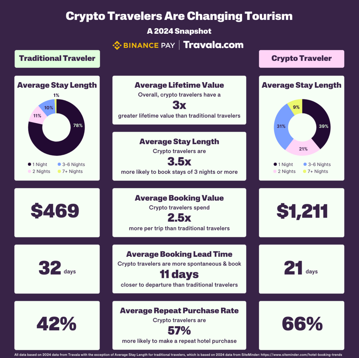 Crypto-based bookings on Travala reached $80 million in 2024, up from $45 million the year before. Crypto travelers are also outspending their fiat counterparts, with an average booking value of  $1,211 per transaction, over 2.5 times more than fiat users who spend $469.