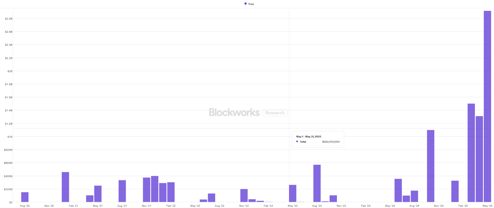 Despite the drop in venture deals, merger and acquisition activity remained robust. Coinbase Global acquired Deribit for $2.9 billion in a traditional merger and acquisition (M&A), the exchange announced on May 8.