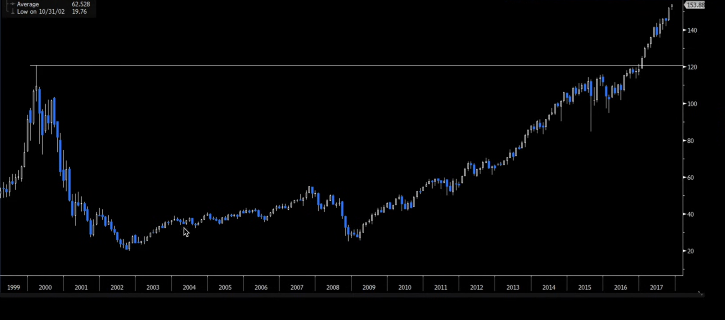 Visser said the current price action in the crypto market is reminiscent of the period following the 2000 dot-com stock market bubble, which crashed stocks by up to 80%, followed by 16 years of consolidation before they regained their previous highs.