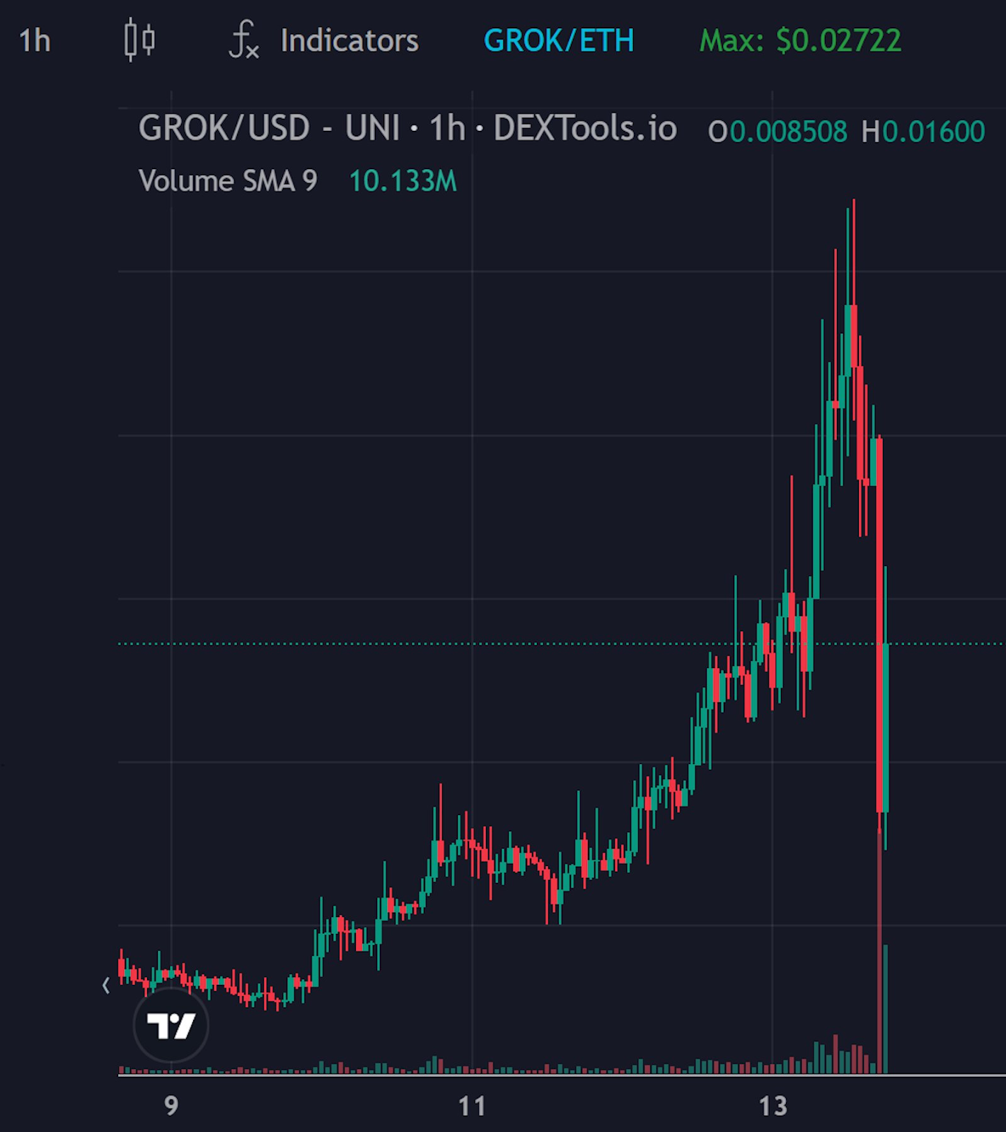 Fake Grok-related tokens first emerged in 2023 when a scammer deployed an ERC-20 Grok token on Ethereum, which led to an over 90% drop after the deployer sold 0.5% of the total supply, according to blockchain data visualization platform, Bubblemaps.