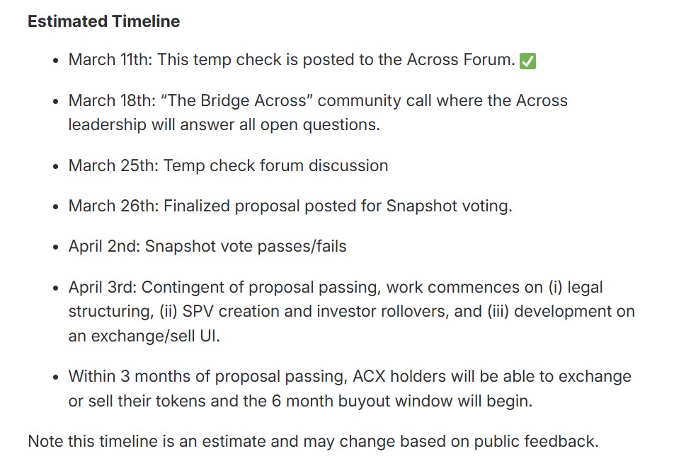 Though Across is eyeing a corporate structure, it still operates as a DAO today. It framed its proposal as a “temperature check” to signal that no final decision has been made. It still needs to pass a governance vote and get the blessing of its token holders.