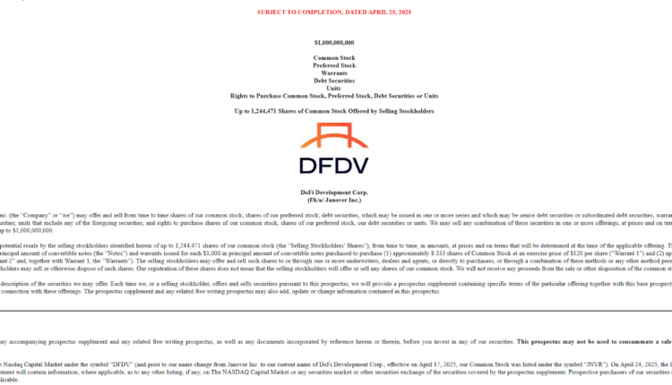 DeFi Development Corp (formerly Janover) aims to raise over $1 billion worth of capital to invest in Solana, the industry’s sixth-largest cryptocurrency by market capitalization.