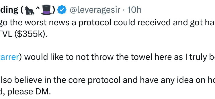 The protocol’s founder, known only as Xatarrer, described the hack as “the worst news a protocol could received [sic],” but suggested the team intends to try to keep the protocol going despite the setback.