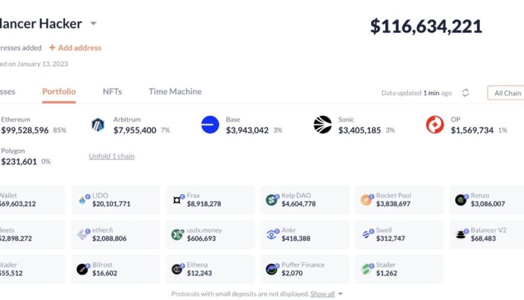 Balancer suffered one of the largest decentralized finance (DeFi) exploits on Monday, with more than $116 million in staked Ether and liquidity pool tokens drained from Balancer v2 contracts and several forks.