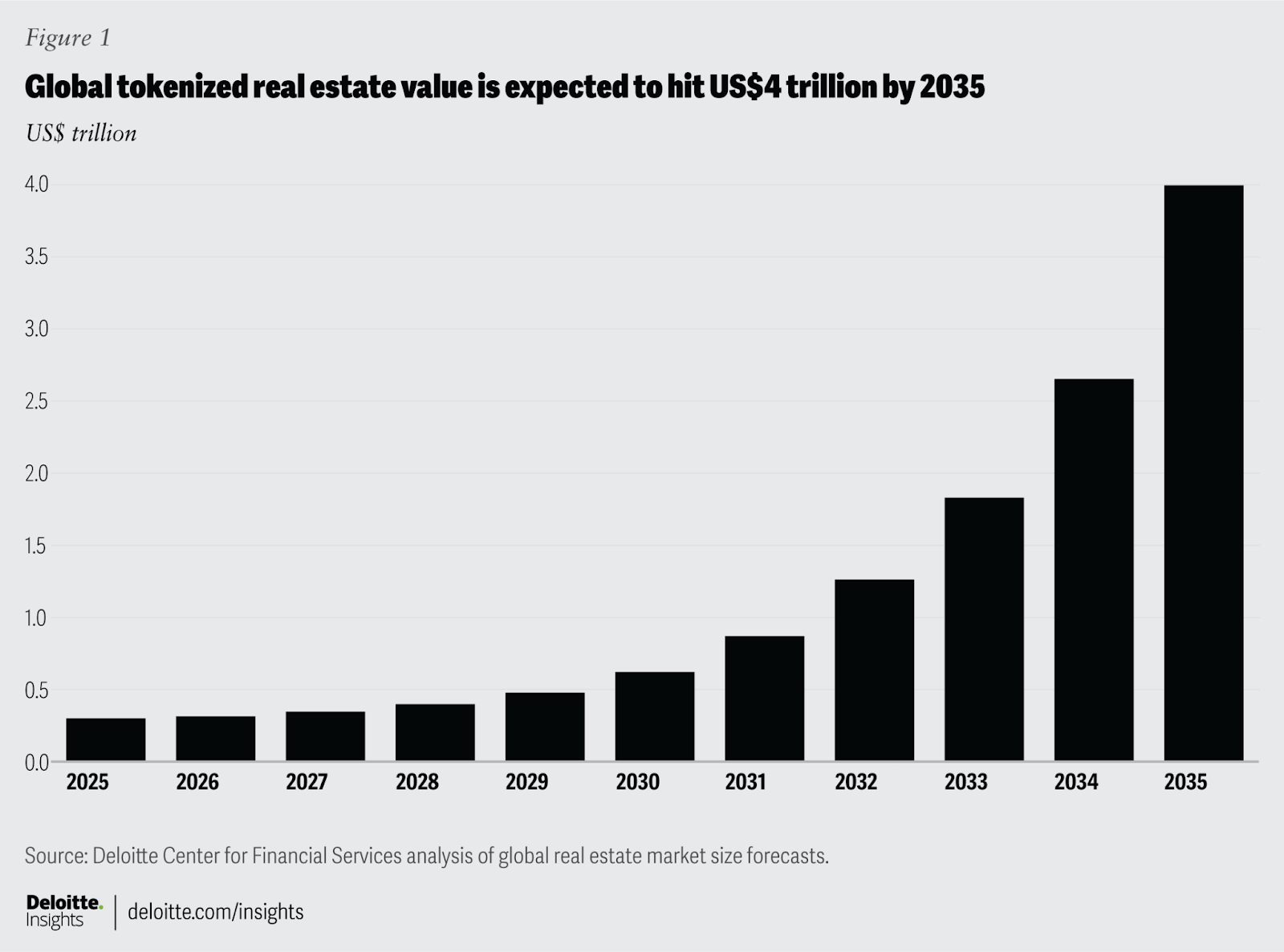 The Deloitte Center for Financial Services predicts that over $4 trillion worth of real estate may be tokenized by 2035, up from less than $300 billion in 2024. The report, published April 24, estimates a compound annual growth rate (CAGR) of more than 27%.