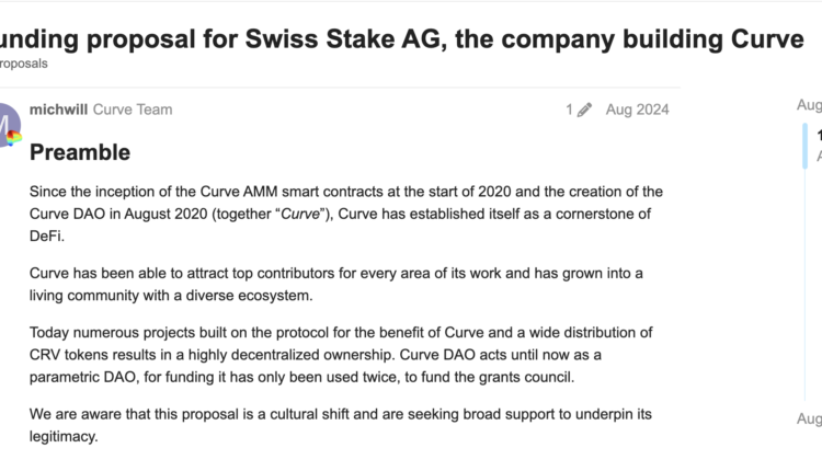 That earlier Curve DAO matter concerned a 2024 governance proposal to provide Swiss Stake AG, the main developer behind the Curve Finance protocol, with a grant valued at about $6.3 million at the time, which drew significant pushback from members of the Curve DAO.