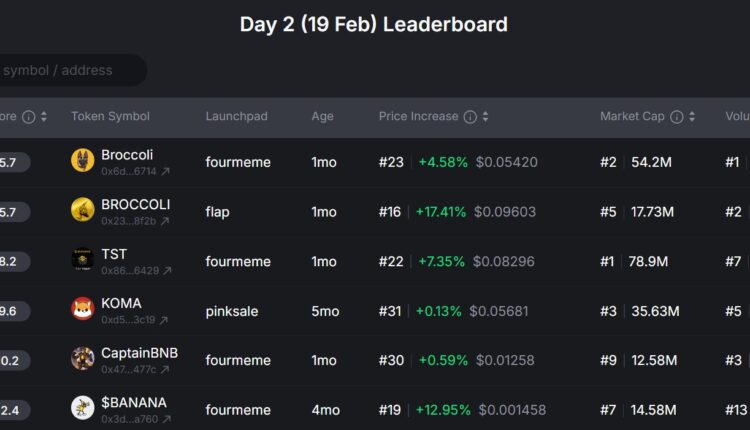 Feb. 19 ranking for BNB Chain’s meme liquidity competition. Source: BNB Chain