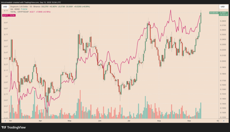 DOGE/USD vs. TOTAL crypto market cap daily chart. Source: TradingView