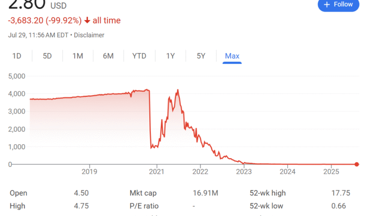 Founded in 2016 as a clinical-stage biotechnology firm, 180 Life Sciences went public in 2020. Since its initial public offering (IPO), the stock has plunged over 99.9%, now trading below $3.00 with a market capitalization of approximately $17 million.