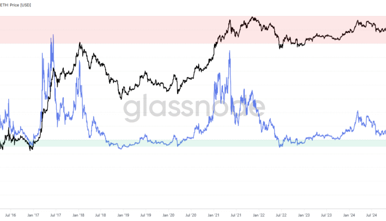 Despite its recent gains, ETH appears to lag behind broader market sentiment. According to Glassnode, the MVRV Z-score — which compares Ethereum’s market cap to its realized cap (the total capital inflow into the asset) — remains well below peak cycle values. While ETH is no longer in the “bearish” range, it still trades far from levels typically associated with euphoric tops.