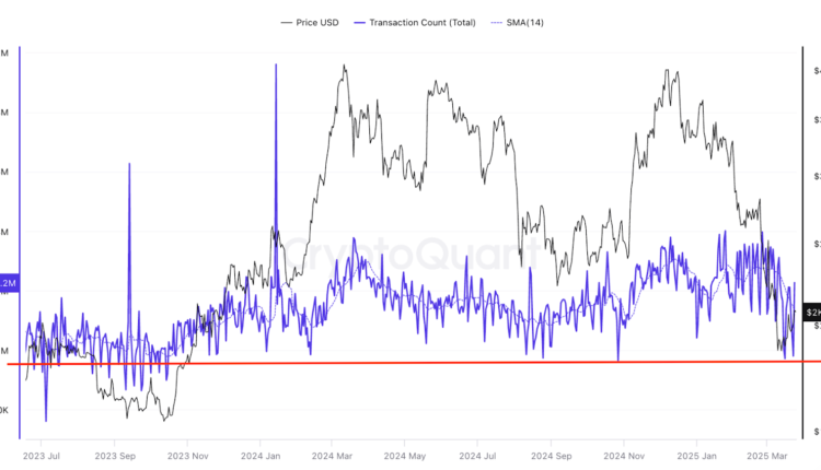 This weakness is reflected in onchain activity, with Ethereum’s daily transaction count dropping to levels last seen in October 2024, before Donald Trump’s presidential election victory.
