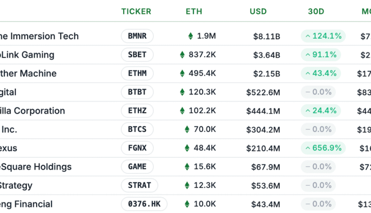Sharplink Gaming is the second-largest public holder of ETH, with $3.6 billion worth, trailing only behind BitMine Immersion Technologies, which holds $8.03 billion.